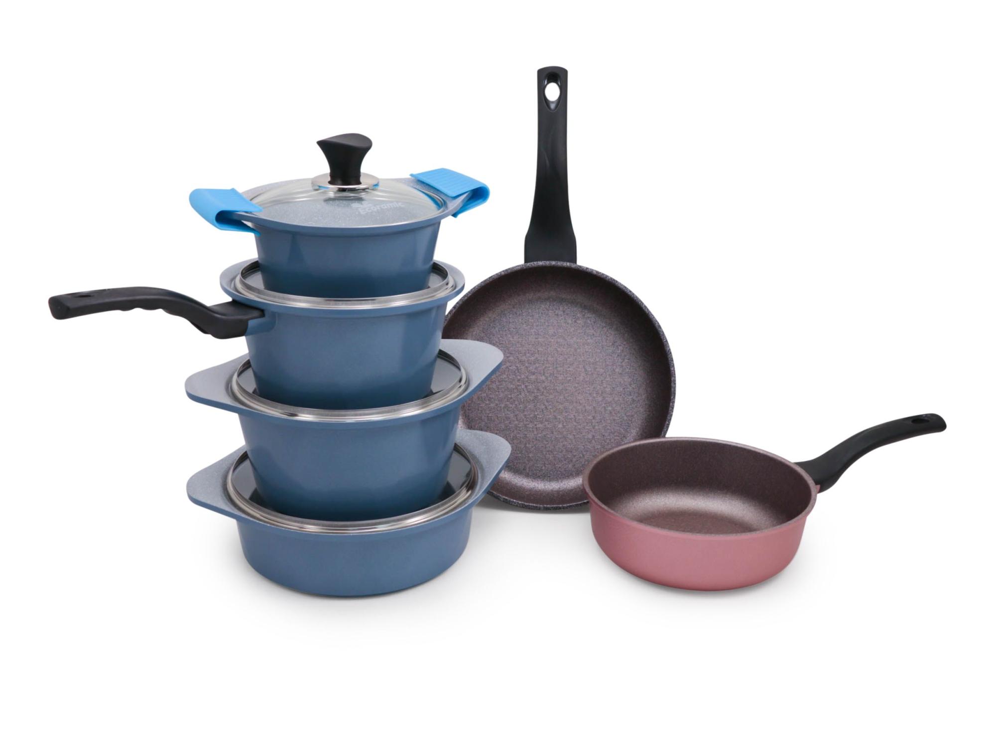 Набор посуды Ecoramic с каменным покрытием (голубой) 12 предметов