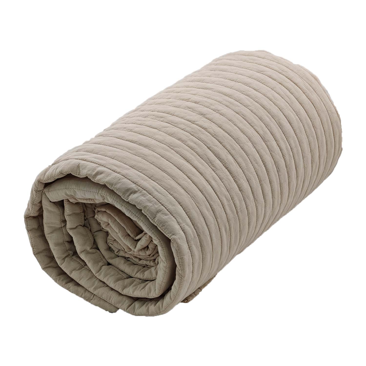 Стеганое одеяло состоит из двух слоев хлопковой ткани, между которыми размещен слой полиэстера. Хлопок — дышащий материал, который обеспечивает прекрасную вентиляцию, а полиэстрер инертный нетканый материал из полиэфирных нитей, который не вызывает раздражения и аллергии.